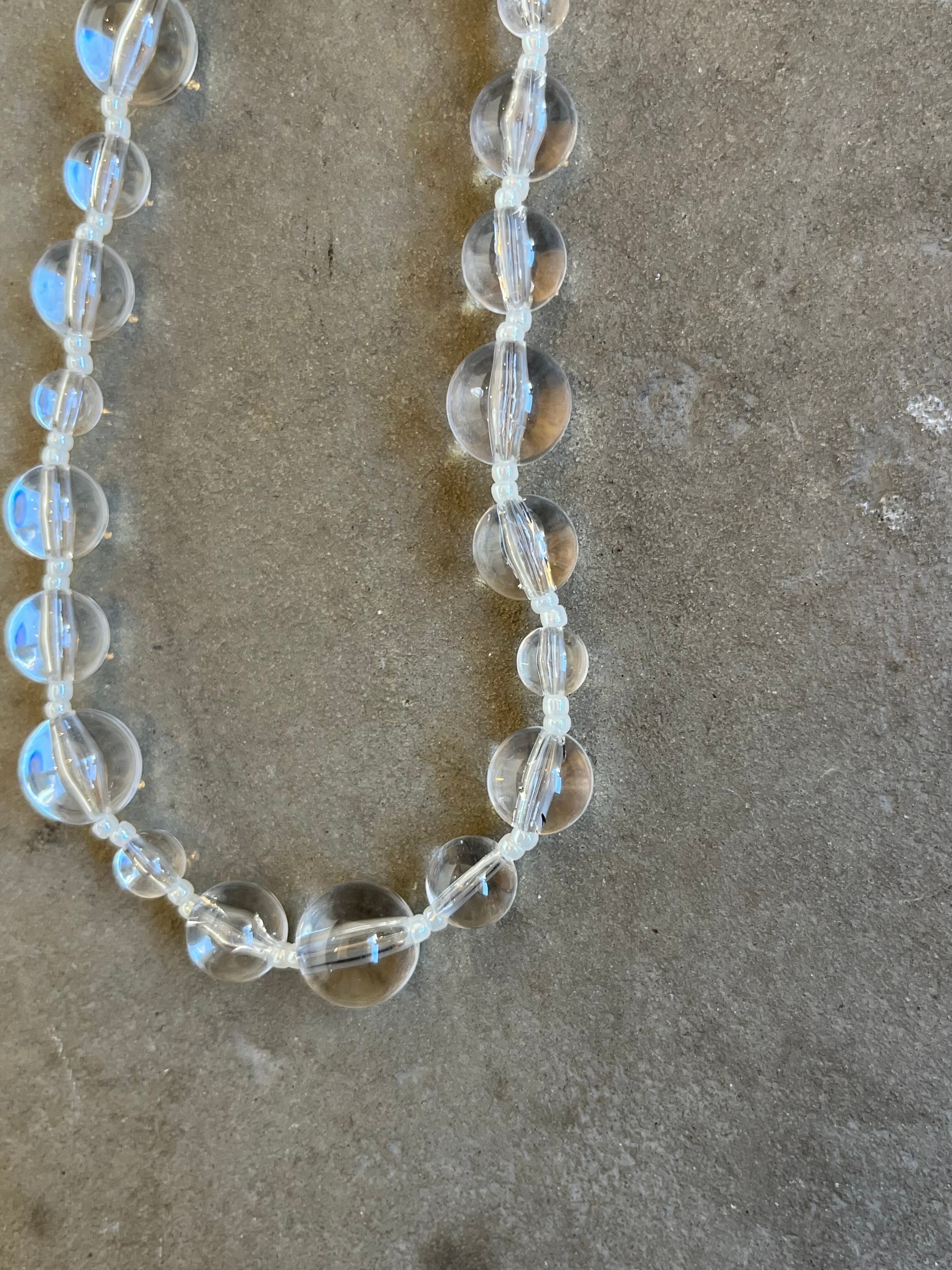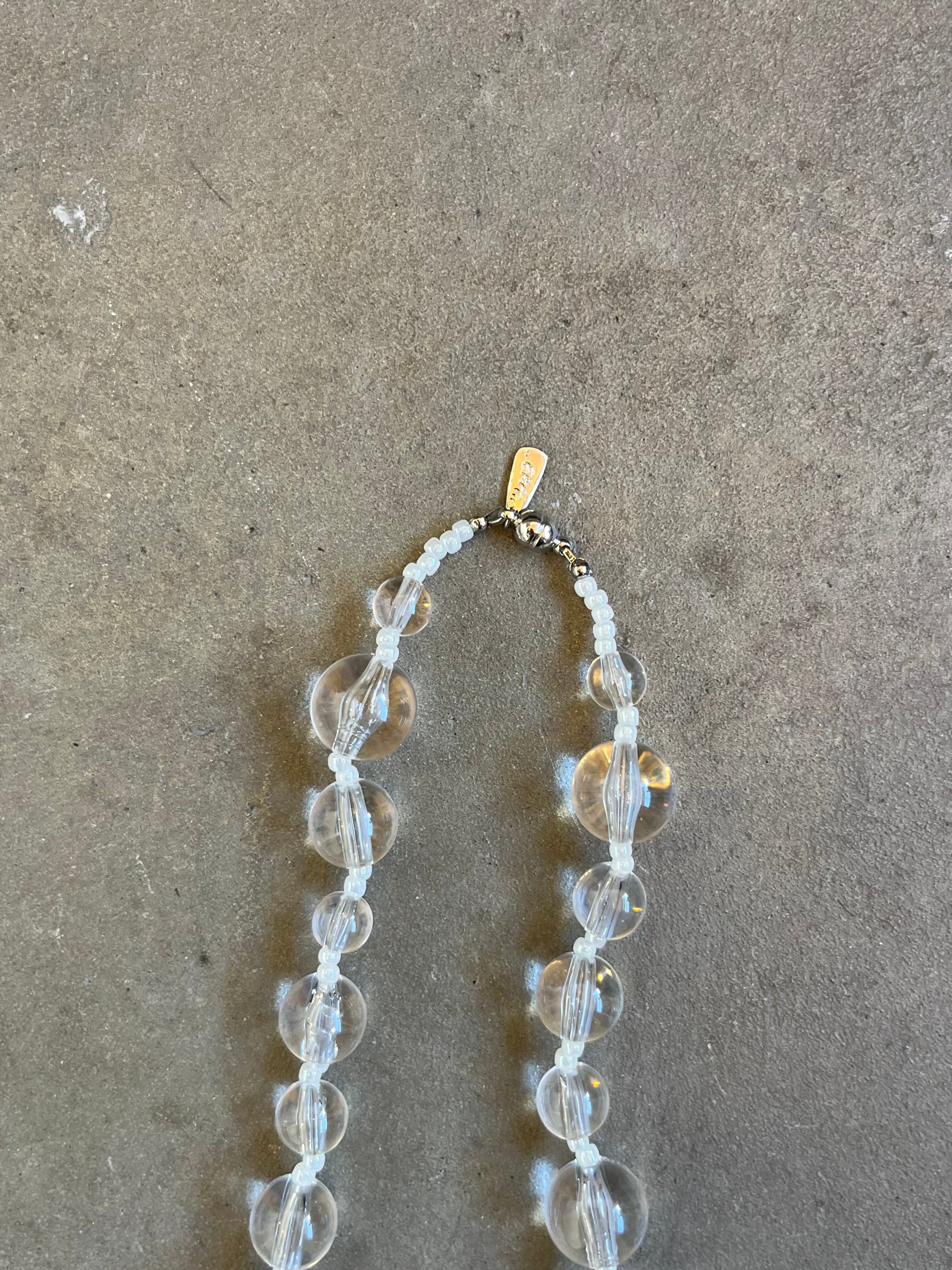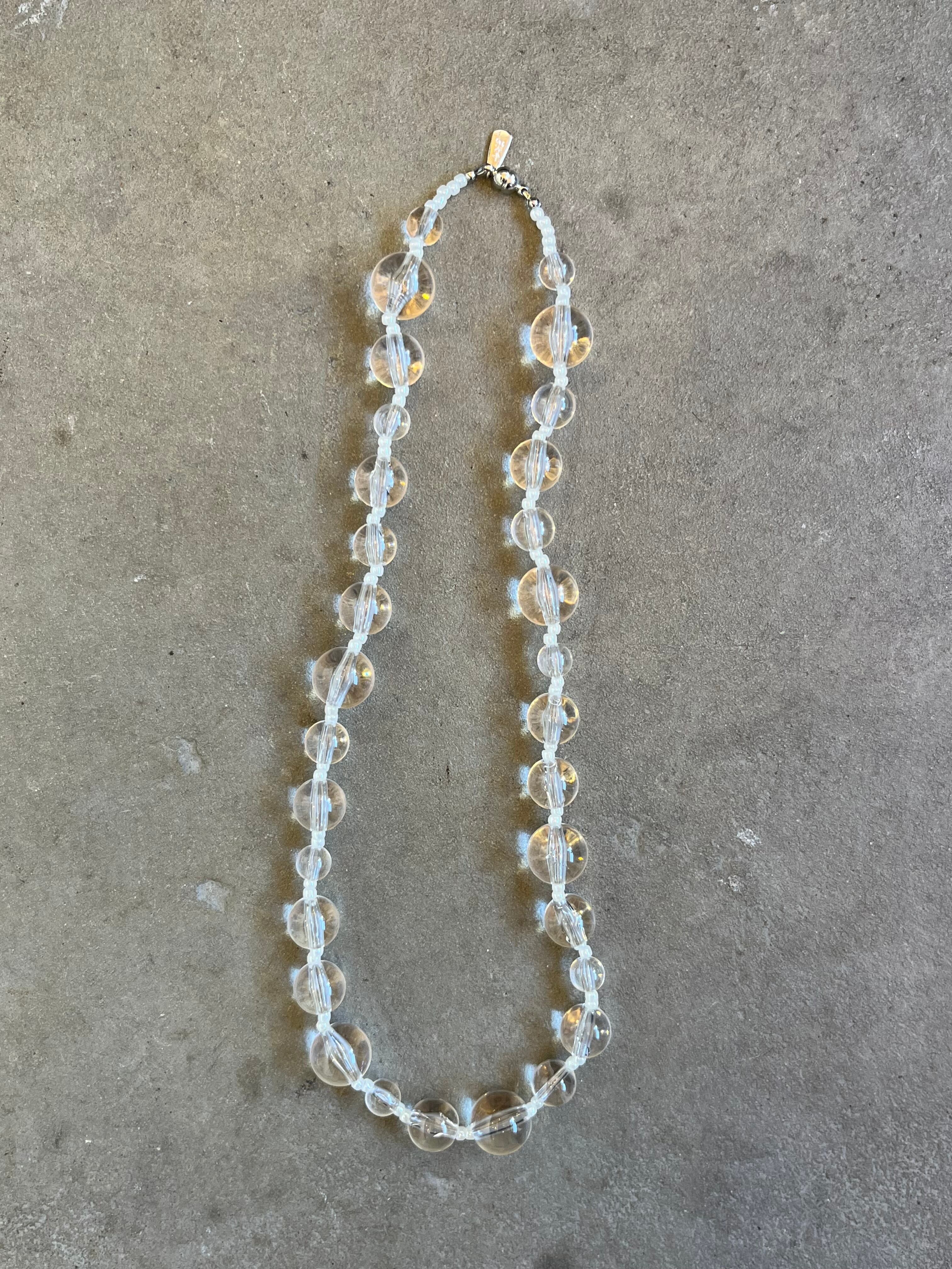 大中小の大きさの異なる透明なアクリルビーズと白色のビーズを使用したネックレスです。