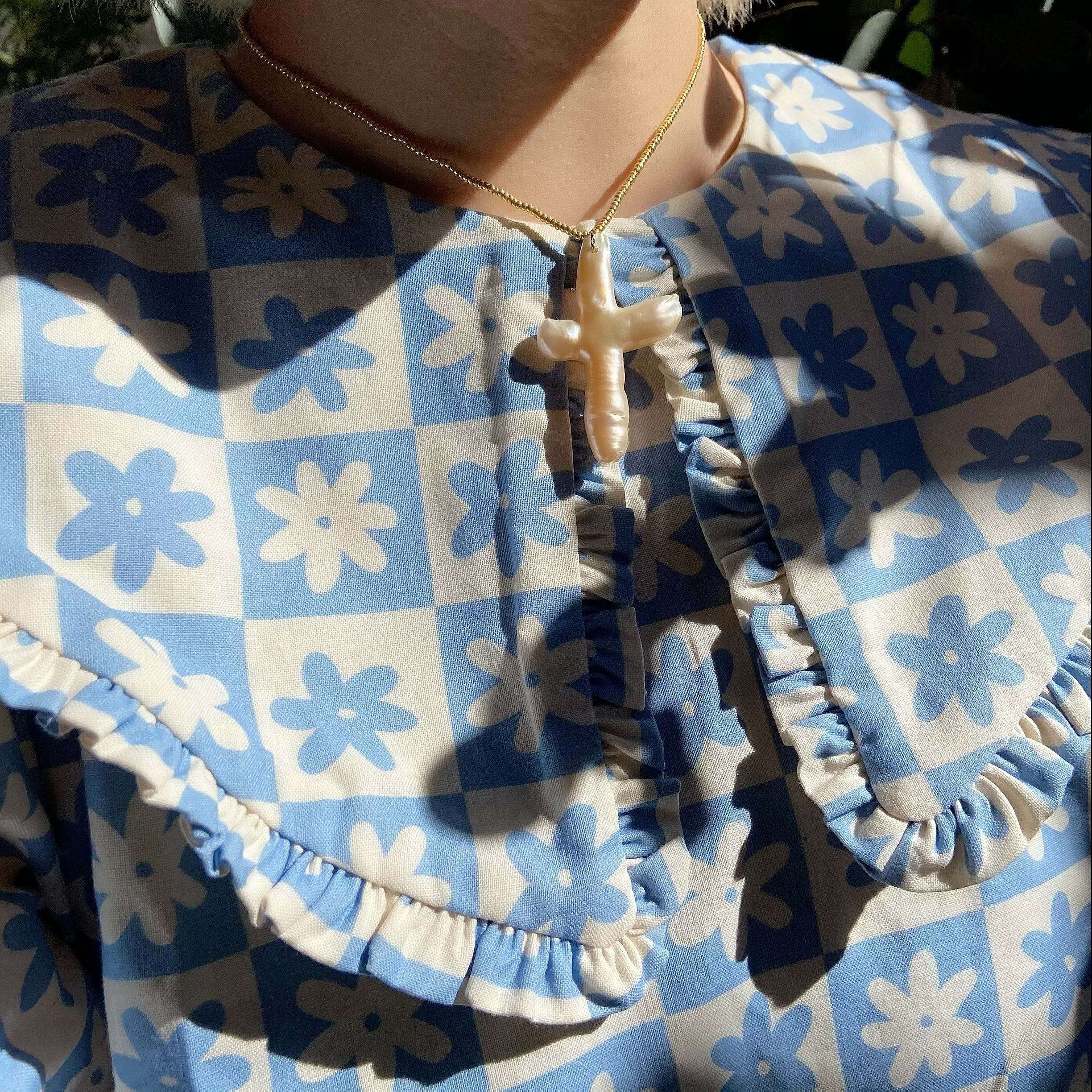 ▼クロスのパールは1つ1つ形が違う為、チェーン部分との接続のパーツが物によっては異なる場合があります。ご了承くださいませ。