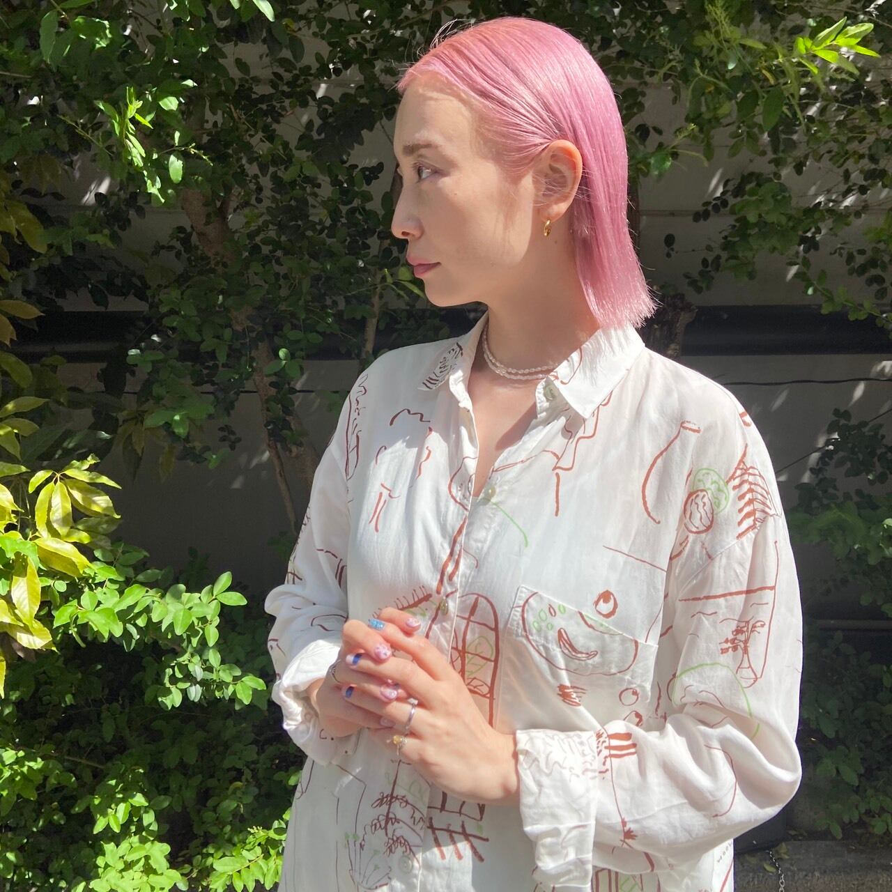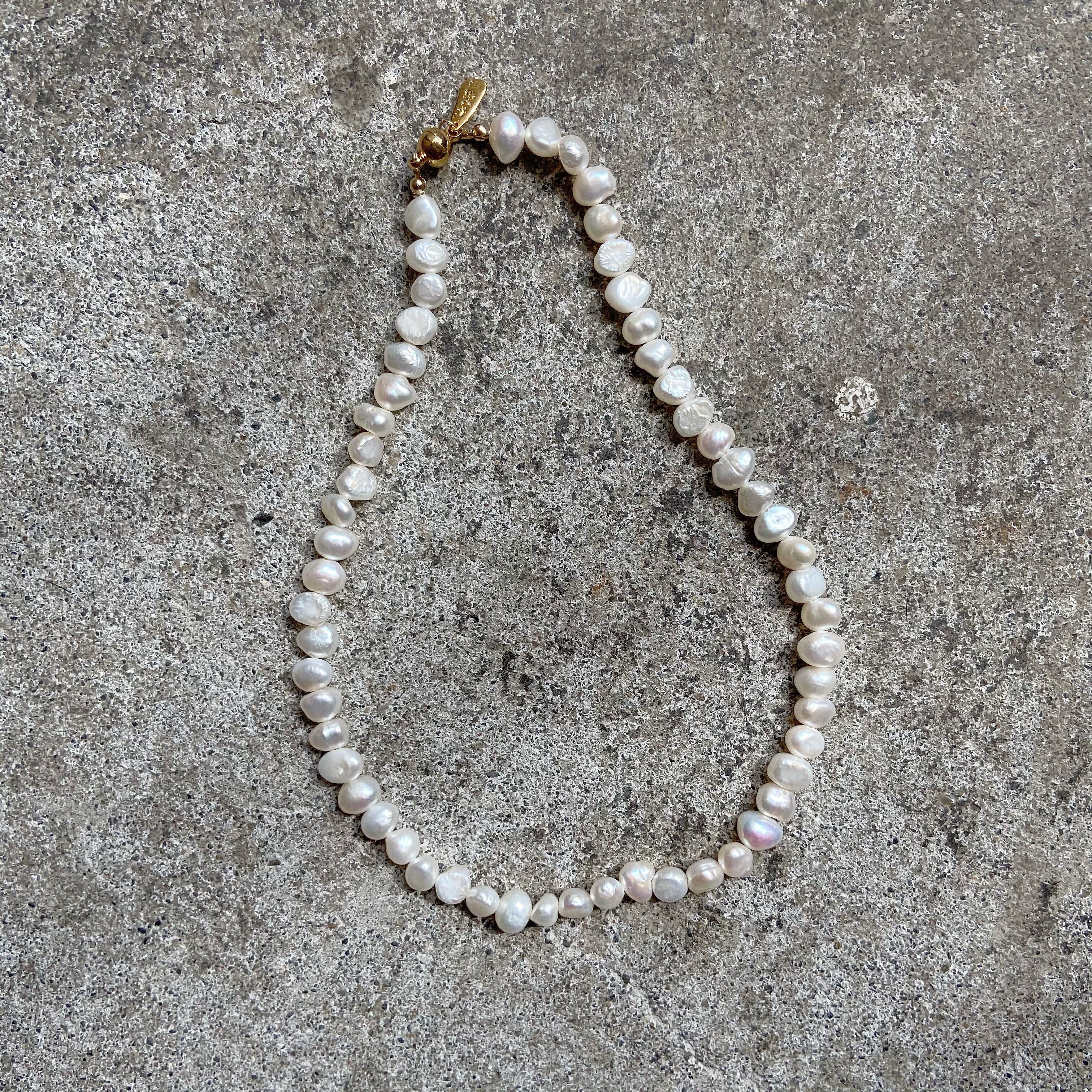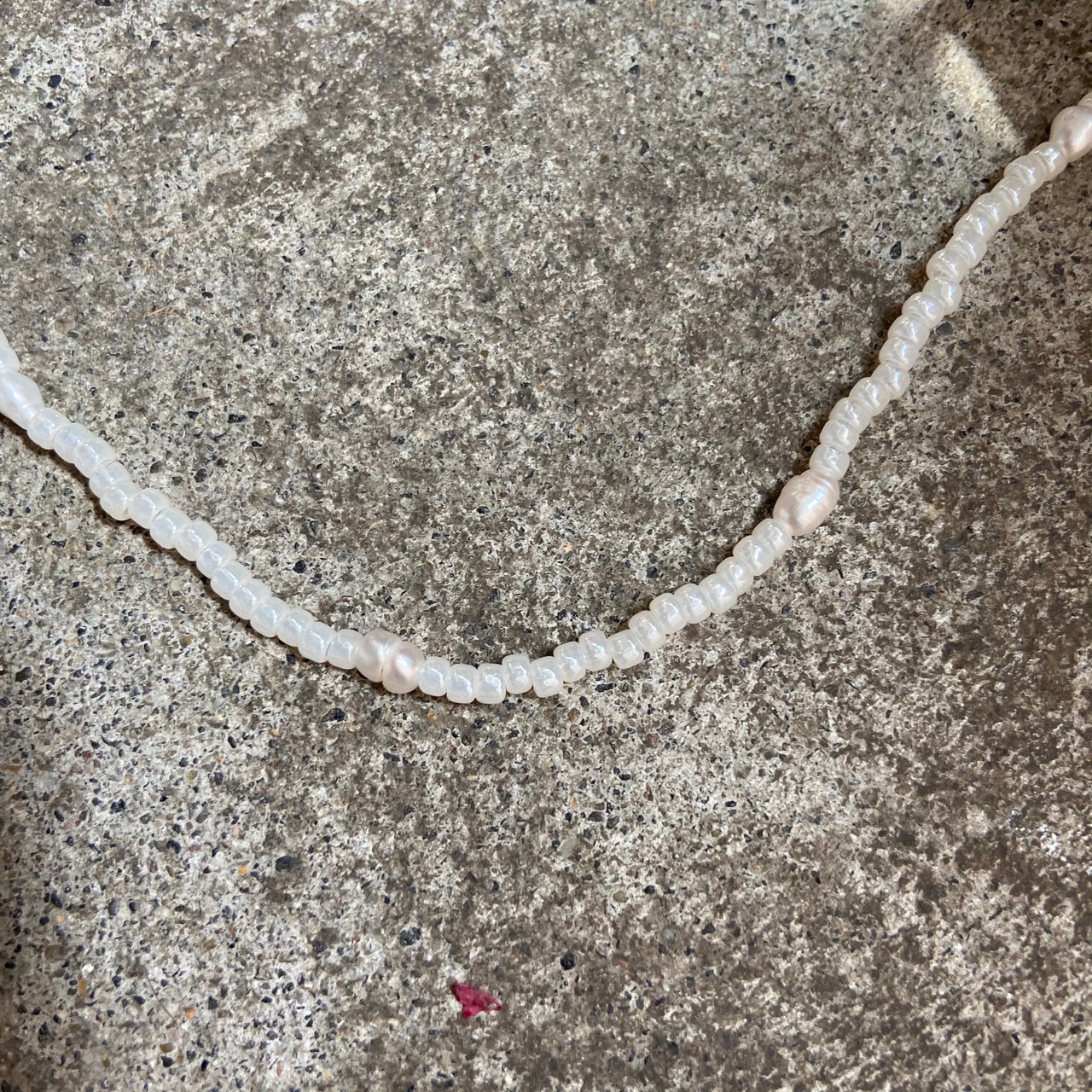 乳白色ののビーズと淡水パールを使用したネックレスです。